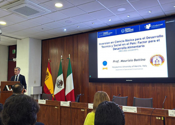 La conferencia magistral estuvo a cargo del Dr. Maurizio Battino, Director del Centro de Nutrición y Salud de la Universidad Europea del Atlántico (UNEATLANTICO) y profesor de la Università Politecnica delle Marche (Italia). En su ponencia, enfatizó la necesidad de fortalecer la inversión en ciencia básica como pilar del desarrollo tecnológico y social, señalando que la investigación sostenida permite generar soluciones innovadoras que impactan directamente en la calidad de vida y en la competitividad de los países, especialmente en materia de soberanía alimentaria.